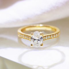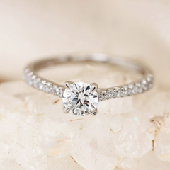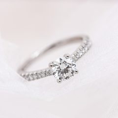 The shoulders of diamonds can either feature around the entirety of the band or blend seamlessly between the centre stone and gold or platinum band they sit on to provide a sleek finish.