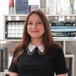 Alicja’s passion for jewellery began as a child, discovering amber on the Baltic Sea shores. Growing up with parents in the antique business sparked her love for beautiful things. She then studied gemmology, jewellery making, and design at the Birmingham School of Jewellery, where she earned her FGA and DGA certificates.