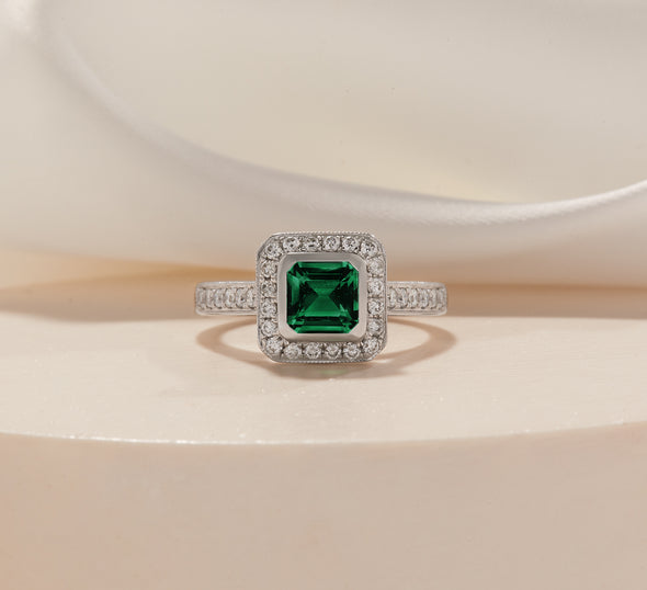 Emeralds are distinct, verdant green gemstones, and are a more unusual choice for gemstone engagement rings. Emeralds are a little softer than sapphires and rubies, ranking 7.5-8 on the Mohs scale, yet their lush and exotic appeal give them a notable charm, ideal for a unique engagement ring. Explore emerald engagement rings designs we love, learn more about the origins of the gemstone and discover how to choose the most ideal emerald for your engagement ring.
