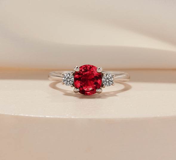 The more intense the red hue of a ruby, the most valuable it is, yet the gemstones can range from pinkish reds to orangey reds and purplish reds. The ideal, vivid red is named ‘pigeon blood’ or ‘blood red’ - which is a pure, vibrant tone. Rubies are a variant of sapphires, and are an ideal choice for an engagement ring due to the passionate colour, lustre and durable structure of the gemstone. Learn more about ruby engagement rings.