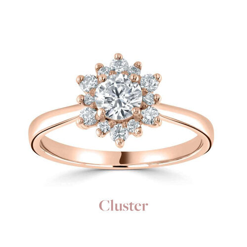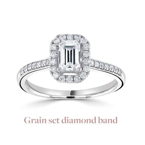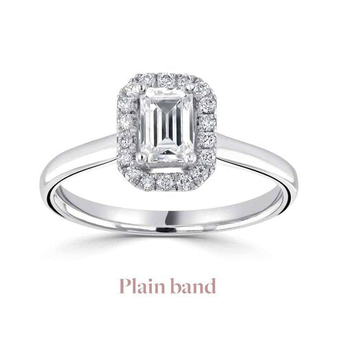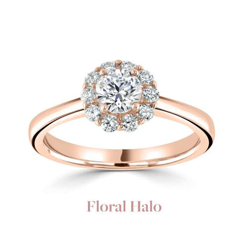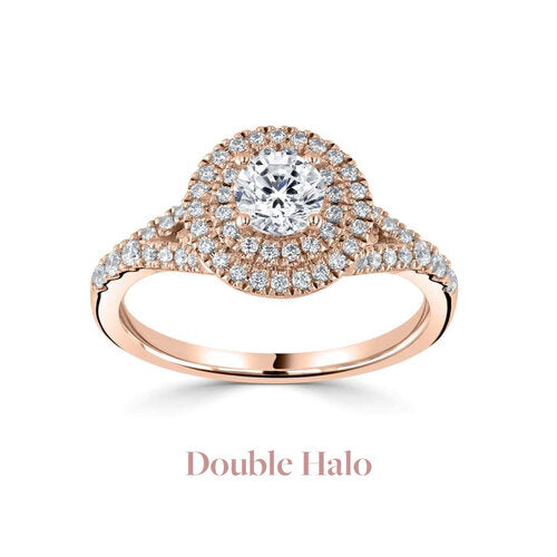 A diamond halo ring is a beautiful and eye-catching piece of jewellery that centres around a larger diamond surrounded by small accent diamonds, creating the effect of a sparkling halo. Often oval and pear-shaped stones are popular in these settings, adding to the luxurious design. This surrounding ring of stones emphasizes the size and brilliance of the central diamond and adds sparkle for an extra touch of glamour,