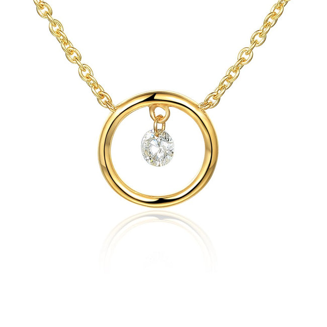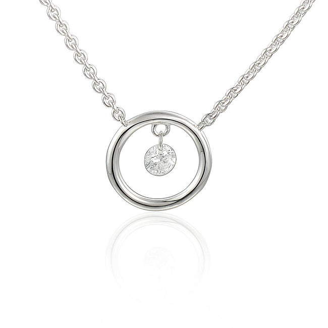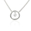Modern and stylish circle necklace in 18ct white gold on a delicate chain with hanging diamond.