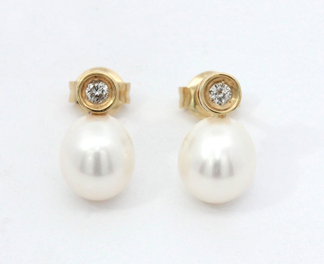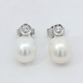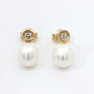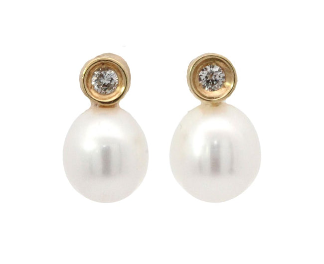 These elegant earrings feature freshwater pearls paired with sparkling diamonds for a classic, timeless look. Each pair includes 0.10ct total diamond weight, set in smooth rub-over settings for a clean finish. Available in 18ct white gold or 18ct yellow gold, they’re perfect for everyday wear or for adding a touch of elegance to any outfit.