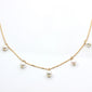 This delicate 18ct yellow gold necklace features five freshwater pearls, each measuring approximately 4.8mm. Evenly spaced along a fine 16-inch chain, the pearls add a soft, elegant touch that’s perfect for everyday wear or special occasions. A classic piece with a timeless, feminine look.